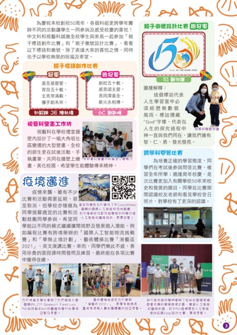 為慶祝本校創校50周年,各個科組更跨學年籌 親子徽號設計比賽 總冠軍