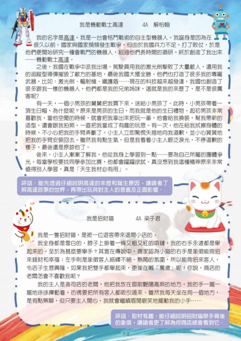 評語:取材有趣;能仔細說明招財貓舉手背後