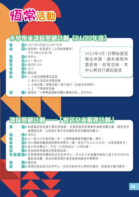 備 註 : 請填妥「小學學童課餘照顧計劃報名表」交回中心