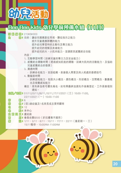 Bee Bee Kids 幼兒學前預備小組(11月)