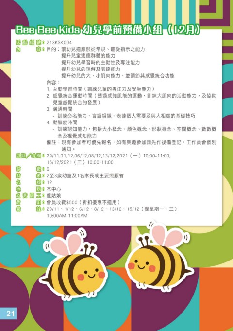 Bee Bee Kids 幼兒學前預備小組(12月)