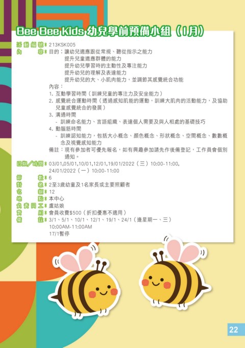 Bee Bee Kids 幼兒學前預備小組(1月)
