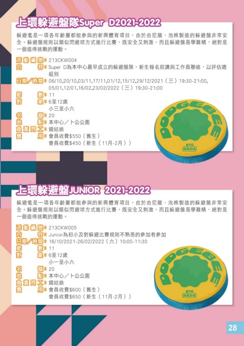 內 容 : Super D為本中心最早成立的躲避盤隊,新生報名前講與工作員聯絡,以評估適