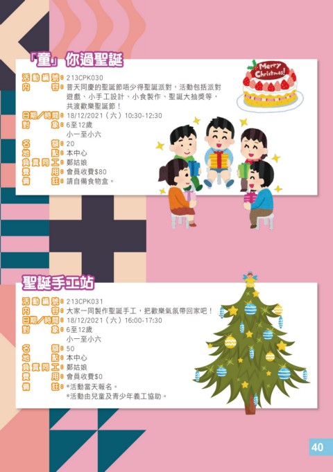 遊戲、小手工設計、小食製作、聖誕大抽獎等,