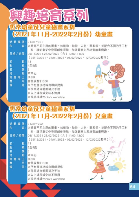 備 註 : ※所有畫班材料由導師提供