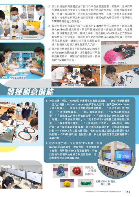生閱讀多篇科技文章;又鼓勵學生參校內與校外課程,如遙控模型車初