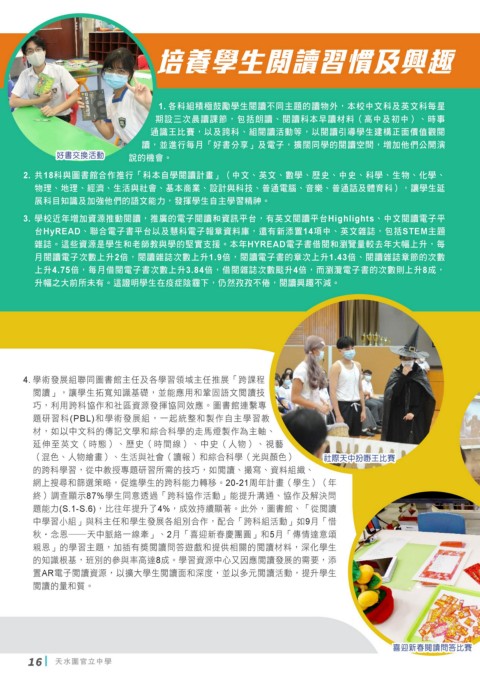 題能力(S.1-S.6),比往年提升了4%,成效持續顯著。此外,圖書館、「從閱讀