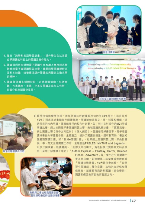 識暑期閱讀計畫」和「教城e閱讀計畫」、社際網上閱讀問答比賽、家長日書