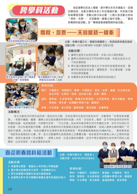 跨學科活動 為促進學生的全人發展,提升學生多元共通能力,加強