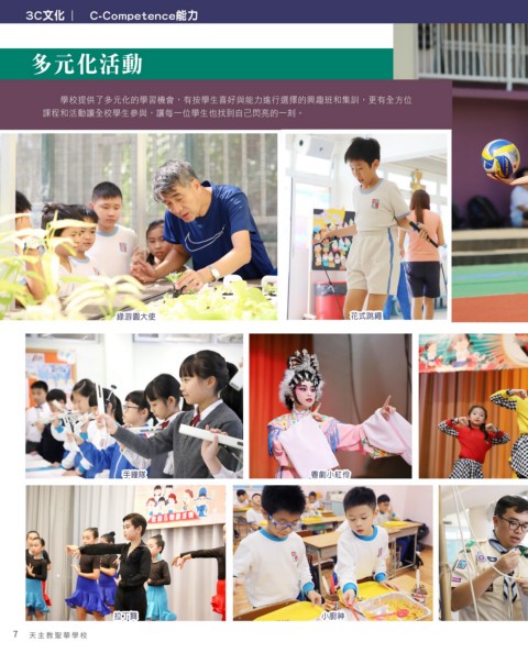 3C文化 C-Competence能力 多元化活動 ኪࣧԶəεʩʷٙኪ୦ዚึdϞܲኪ͛ఃλၾঐɢආБ፯ٙጳሳफձණdһϞΌ˙З ሙձݺਗᜫΌࣧኪ͛ਞၾdᜫӊɓЗኪ͛ɰҬՑІʉ৪ڥٙɓՍf 花式跳繩 綠游園大使 花式跳繩 閃避球 綠游園大使 閃避球 Hip-Hop Dance 粵劇小紅伶 手鐘隊 手鐘隊 粵劇小紅伶 Hip-Hop Dance 幼童軍 拉丁舞 小廚神 幼童軍 小廚神 拉丁舞 7 天主教聖華學校