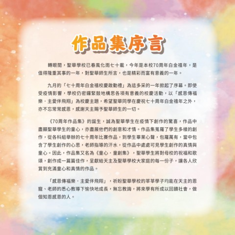 《70周年作品集》的誕生,誠為聖華學生在疫情下創作的驚喜,作品中