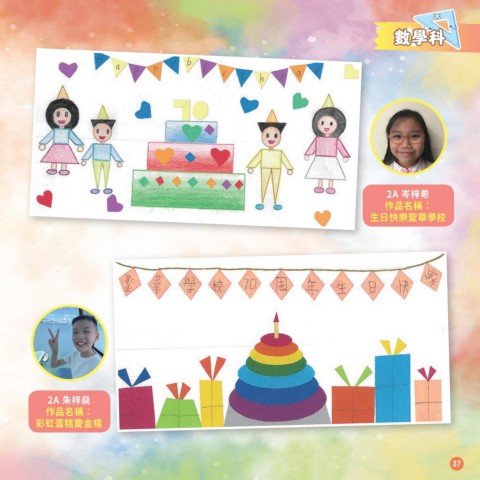 數學科 2A 岑梓希 作品名稱: 生日快樂聖華學校 2A 朱梓燊 作品名稱: 彩虹蛋糕慶金禧 37