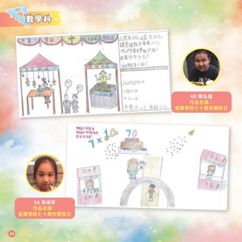數學科 4D 陳弘禧 作品名稱: 聖華學校七十周年開放日 5A 梁倬寧 作品名稱: 聖華學校七十周年開放日 40
