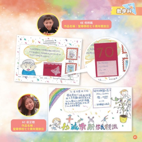 數學科 4E 何梓銘 作品名稱:聖華學校七十周年開放日 6C 莊芷翹 作品名稱: 聖華學校七十周年開放日 41