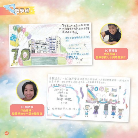數學科 6C 蔡楷楷 作品名稱: 聖華學校七十周年開放日 6C 鍾依辰 作品名稱: 聖華學校七十周年開放日 42