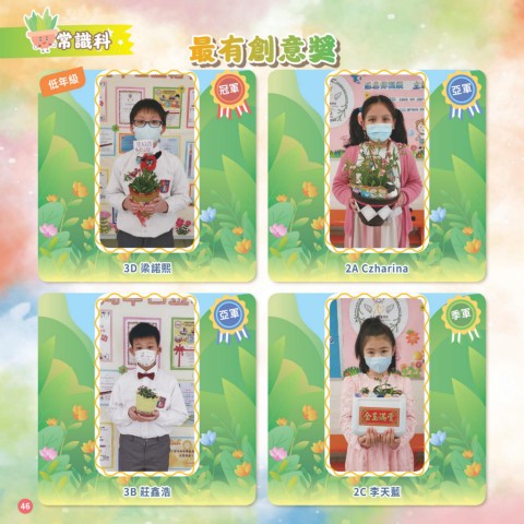 常識科 最有創意獎 低年級 冠軍 亞軍 3D 梁諾熙 2A Czharina 亞軍 季軍 3B 莊鑫浩 2C 李天藍 46
