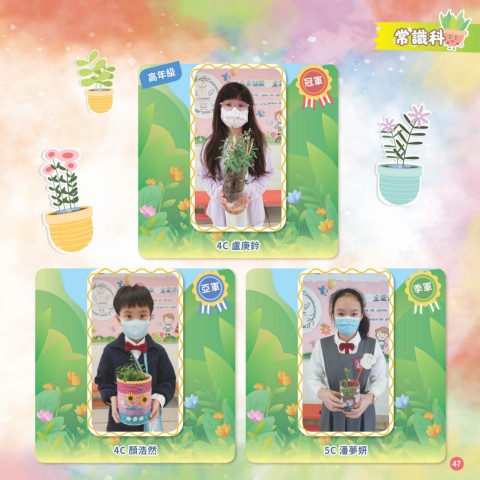 常識科 高年級 冠軍 4C 盧庚鈴 亞軍 季軍 4C 顏浩然 5C 潘夢妍 47