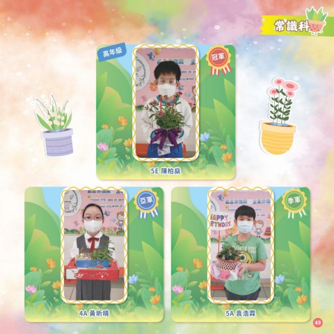 常識科 高年級 冠軍 5E 陳柏燊 亞軍 季軍 4A 黃昕晴 5A 袁浩霖 49