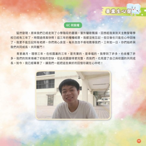 猛然發現,原來我們已經走到了小學階段的盡頭。窗外驪歌飄揚,回想起我來到天主教聖華學