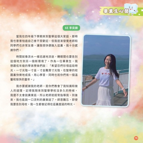 當我在四年級下學期來到聖華這個大家庭,那時 畢業生心聲