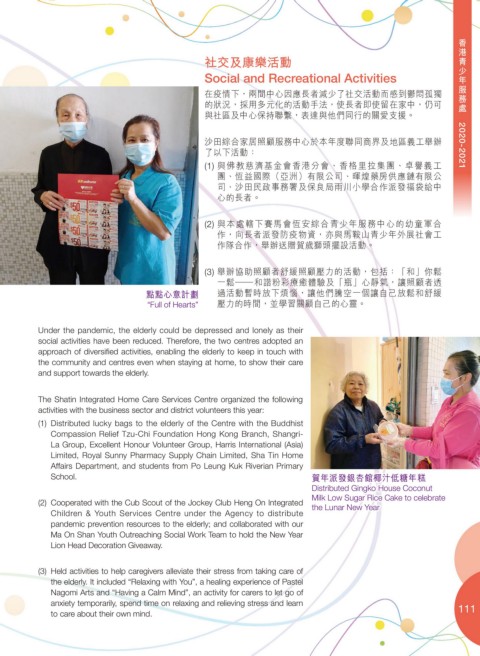 沙田綜合家居照顧服務中心於本年度聯同商界及地區義工舉辦 2020-2021