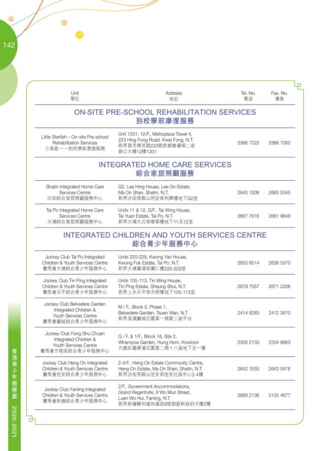 Children & Youth Services Centre Heng On Estate, Ma On Shan, Shatin, N.T. 2642 1555 2643 0476