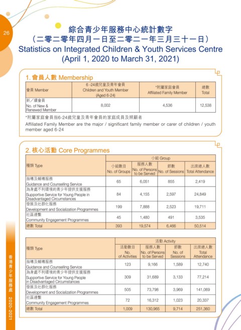 *附屬家庭會員指6-24歲兒童及青年會員的家庭成員及照顧者