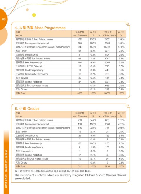 以上統計數字並不包括九所由綜合青少年服務中心提供服務的中學。