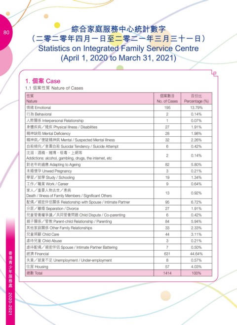 少 年 青 香 港 服 處 務 虐待配偶/親密伴侶 Spouse / Intimate Partner Battering 7 0.50%