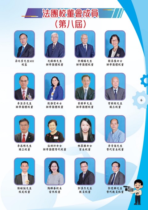 法團校董會成員 法團校董會成員 (第八屆) (第八屆) 梁兆棠先生MH 冼錦維先生 許耀賜先生 關慕儀女士 校監 辦學團體校董 辦學團體校董 辦學團體校董 6 麥淦渠先生 甄靜雯女士 黃錦華先生 曾鉅桓先生 辦學團體校董 辦學團體校董 辦學團體校董 獨立校董 李逸樵先生 張綺玲女士 林築雅女士 李青強先生 獨立校董 辦學團體替代校董 家長校董 替代家長校董 陳皓誠先生 陶群眷校長 郭漢杰先生 郭楚群先生 校友校董 當然校董 教員校董 替代教員校董