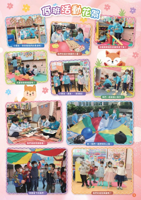低班活動 花絮 小朋友,快來看我們的表演吧! 你猜猜哪個形狀最快滾下來? 我們在設計美麗的小屋! 大家快來砌城堡吧! 小朋友,請坐。(普通話) 我們一起做個小幫手! 我們喜歡閱讀圖書! 來!我們一起把球向上拋。 快樂傘下的我們。 我們的造型美麗嗎? 5