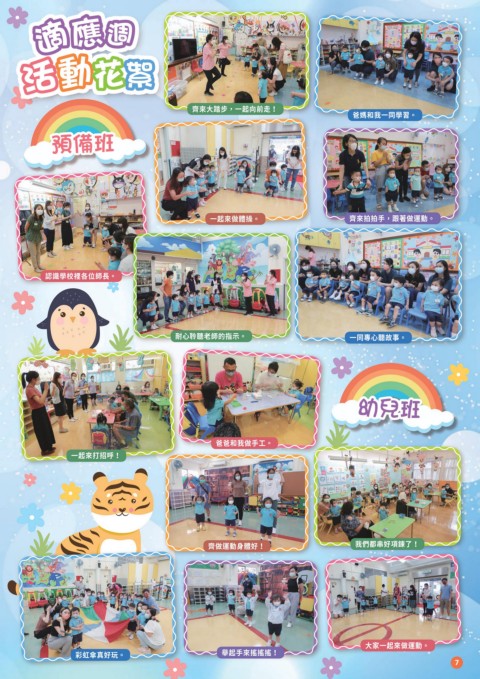 適應週 活動 花絮 齊來大踏步,一起向前走! 爸媽和我一同學習。 預備班 一起來做體操。 齊來拍拍手,跟著做運動。 認識學校裡各位師長。 耐心聆聽老師的指示。 一同專心聽故事。 幼兒班 爸爸和我做手工。 一起來打招呼! 齊做運動身體好! 我們都串好項鍊了! 大家一起來做運動。 彩虹傘真好玩。 舉起手來搖搖搖! 7