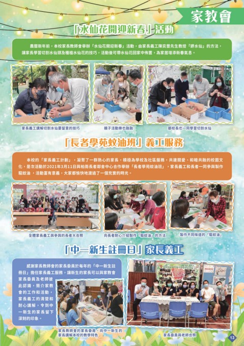 本校的「家長義工計劃」,凝聚了一群熱心的家長,積極為學校及社區服務,共建關愛、和睦共融的校園文