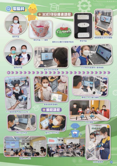 電腦科 3D打印及繪畫課程 我的作品 電腦繪圖及3D打印課程 學生作品-筆筒 學生作品 運用3D立體打印筆製作匙扣 我們的作品 小小年紀也能運用小畫家繪圖 設計3D打印的名牌 運用Scratch進行編程 透過遊戲學習編程 編程課程 下一組就到我們測試mbot啦! Dash課程 學生logo作品 製作Scratch作品 學習microbit mbot機械車 10