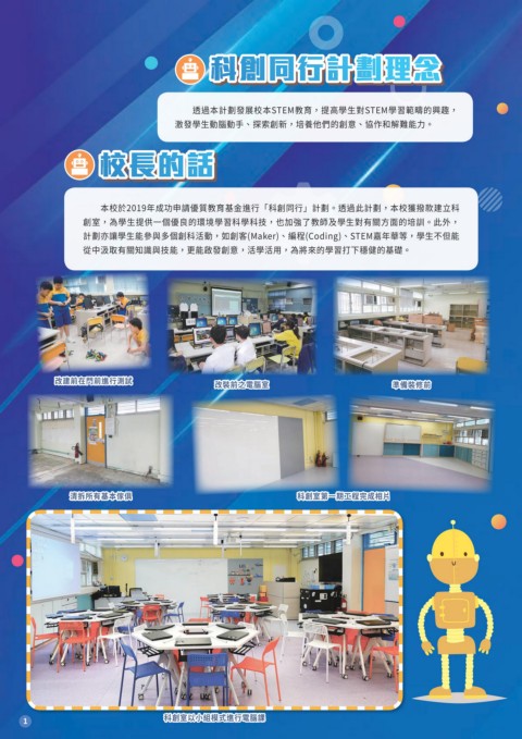 創室,為學生提供一個優良的環境學習科學科技,也加強了教師及學生對有關方面的培訓。此外,