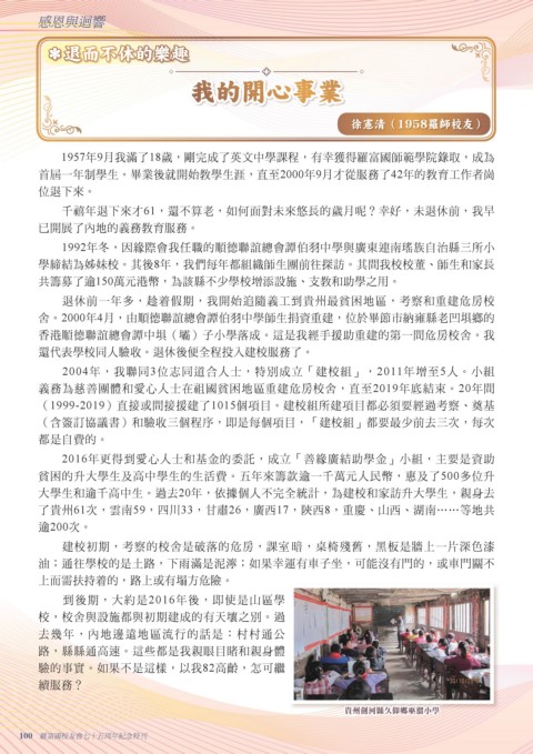 還代表學校同人驗收。退休後便全程投入建校服務了。