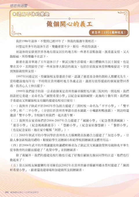 (三)2005年與武平的中學同學於貴州省大方縣興隆苗族鄉合力援建了「知思小學」。廿