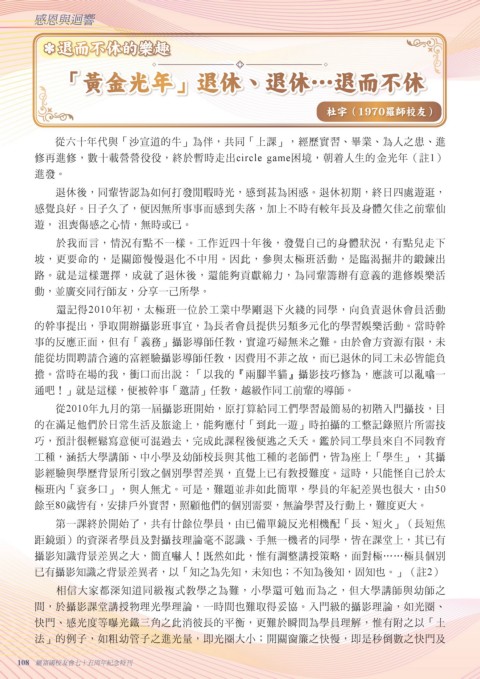 路。就是這樣選擇,成就了退休後,還能夠貢獻綿力,為同輩籌辦有意義的進修娛樂活