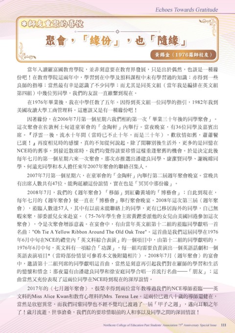 Northcote College of Education Past Students’ Association 75 Anniversary Special Issue 111