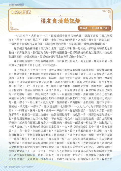 友)。稍後,在他引薦之下,開始,參加了校友會的活動,之後那十幾年間,教書之餘,