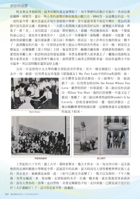 如橋牌、球類等,還有一些小型的康樂活動如鳳凰山觀日出,BBQ等,而最難忘的是一年