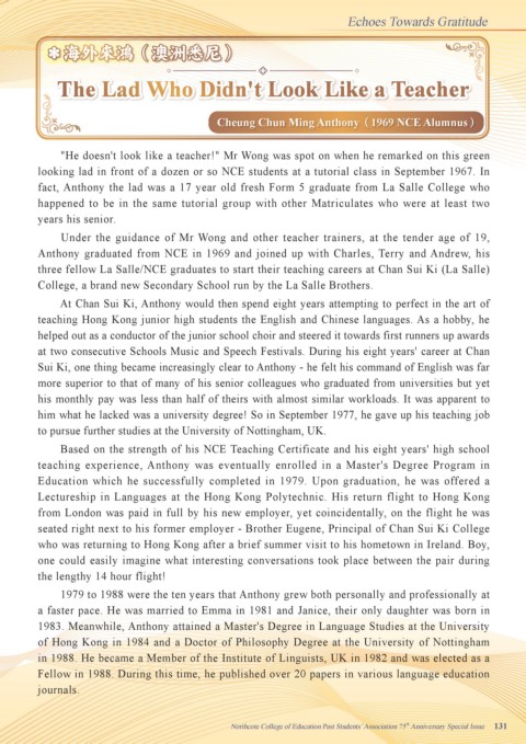 Northcote College of Education Past Students’ Association 75 Anniversary Special Issue 131