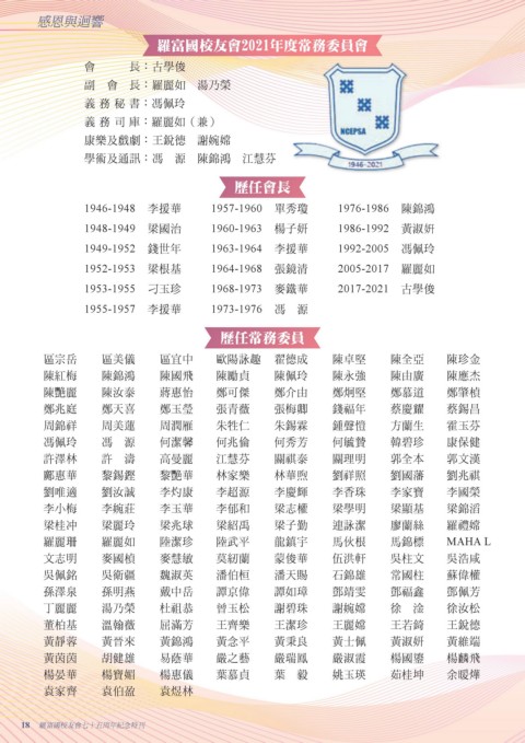 1953-1955 刁玉珍 1968-1973 麥鐵華 2017-2021 古學俊