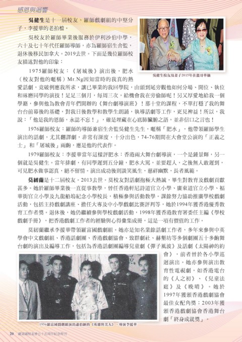吳校友於羅師畢業後服務於伊利沙伯中學,