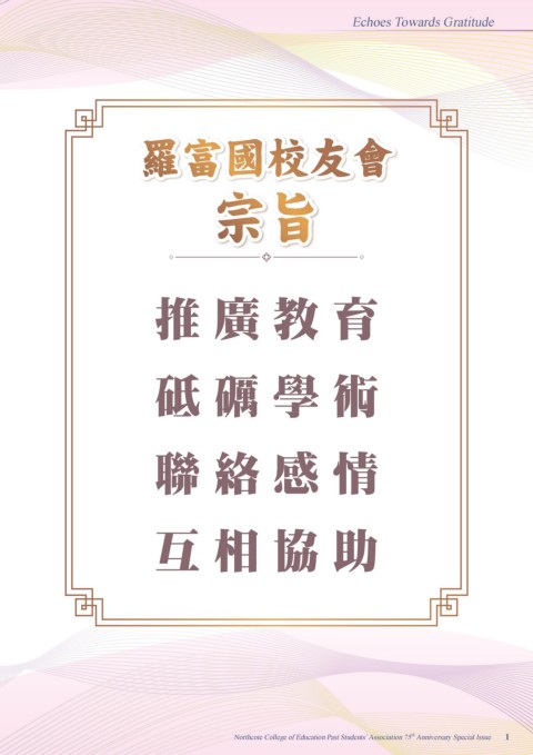 Echoes Towards Gratitude 羅富國校友會 宗旨 推廣教育 砥礪學術 聯絡感情 互相協助 th Northcote College of Education Past Students’ Association 75 Anniversary Special Issue 1