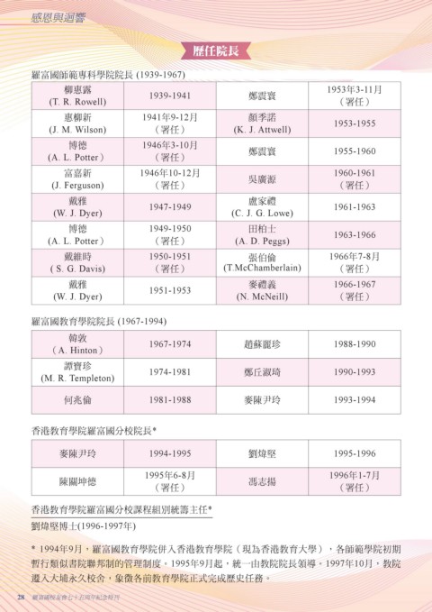 * 1994年9月,羅富國教育學院併入香港教育學院(現為香港教育大學),各師範學院初期