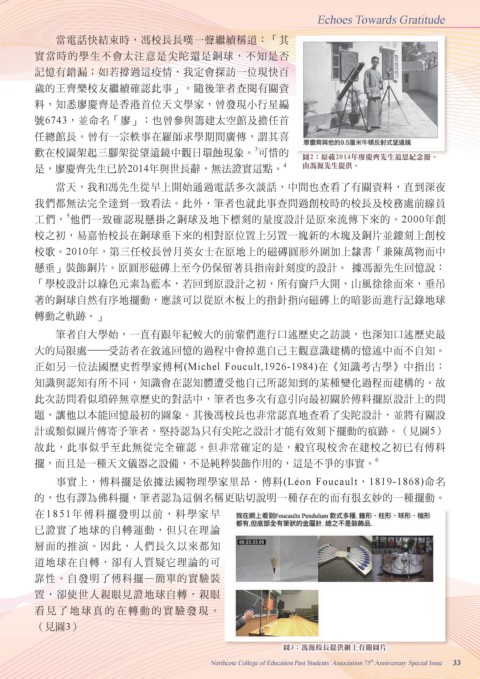 此次訪問看似瑣碎無章歷史的對話中,筆者也多次有意引向最初關於傅科擺原設計上的問