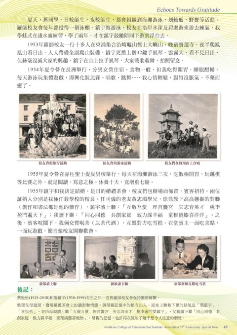 夏天,舊同學、日校師生、夜校師生,都會組織到海灘游泳、划舢舨、野餐等活動。