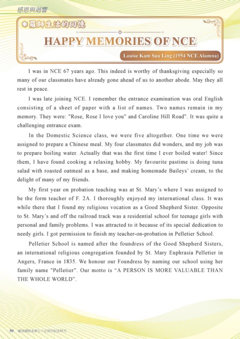 while there that I found my religious vocation as a Good Shepherd Sister. Opposite