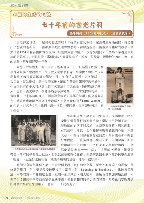 的內容。1950年9月,我們一班十多位中學同學,很幸運地可以一齊 1951年羅富國師資學院